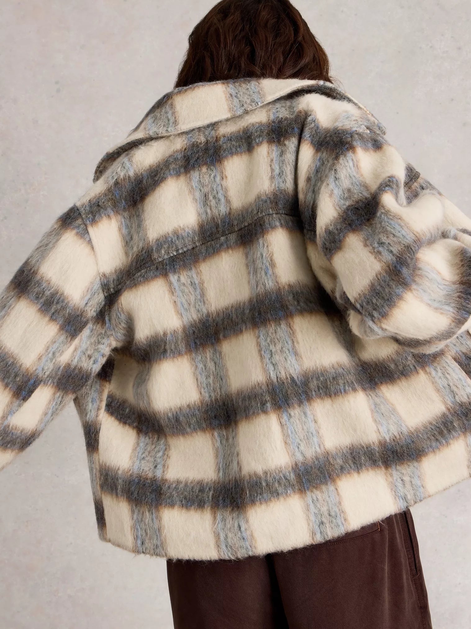 Stay stylish and sustainable with the Alexa Check Wool Blend Jacket from White Stuff. This slightly cropped, relaxed-fit jacket combines recycled polyester, wool, and polyester for warmth and eco-friendly flair. Featuring a classic collar and handy front patch pockets, it’s perfect for adding a clever twist to your layering game. Dry Clean. Shop White Stuff in Sola Boutique this season.