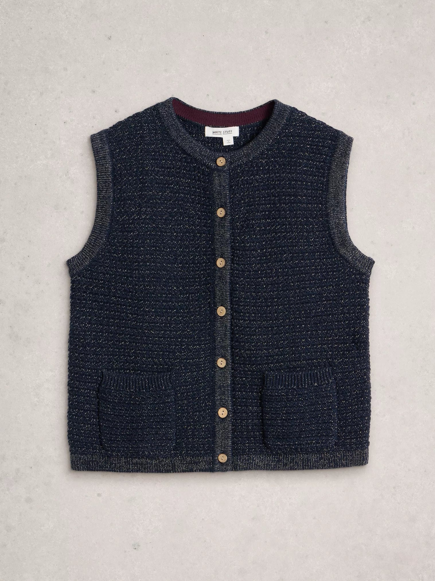 Add a dash of sparkle to any outfit with the Belle Sparkle Cardigan. Perfect layered over a smart shirt for office chic, draped over a dress for extra flair, or worn solo on sunny days, it brings a playful shimmer wherever you go. Crafted from 96% organic cotton with a touch of polyester and metallic fibre, it’s soft, sustainable, and effortlessly stylish. Featuring a crew neck and sleeveless design with a regular fit, it’s as easy to care for as it is to love—just pop it in the machine!