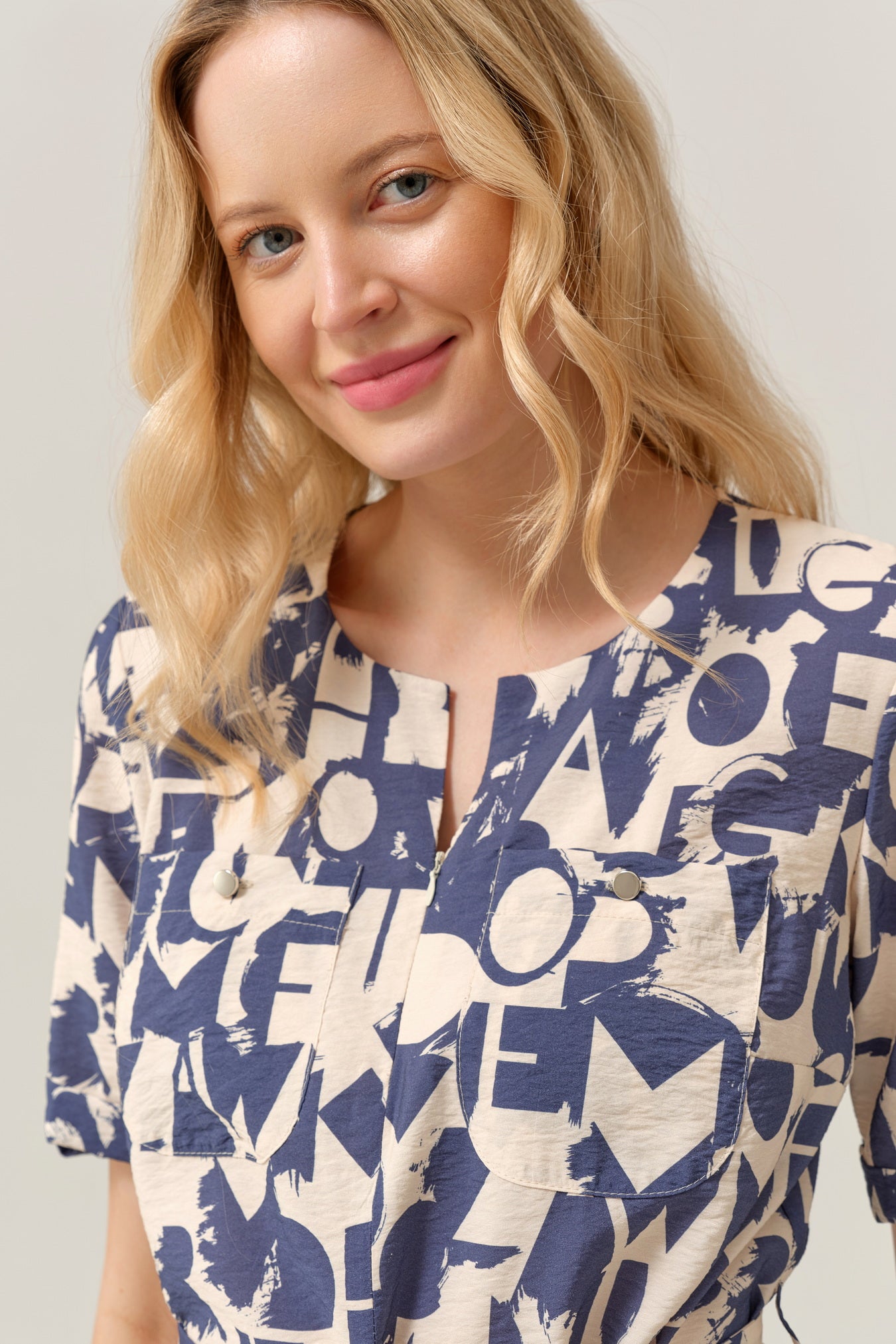 The FÉRIA dress combines artistic flair with everyday versatility. This midi dress features a striking blue and cream print that create visual interest against soft, breathable fabric. The flattering V-neckline and waist tie add subtle shaping, while short sleeves provide comfort and ease of movement. Perfect for work, casual outings, or social gatherings, it pairs effortlessly with white, navy, or beige accessories—from sandals to sneakers. A modern wardrobe essential that balances graphic style with understated elegance. Shop Feria in Sola Boutique this season.
