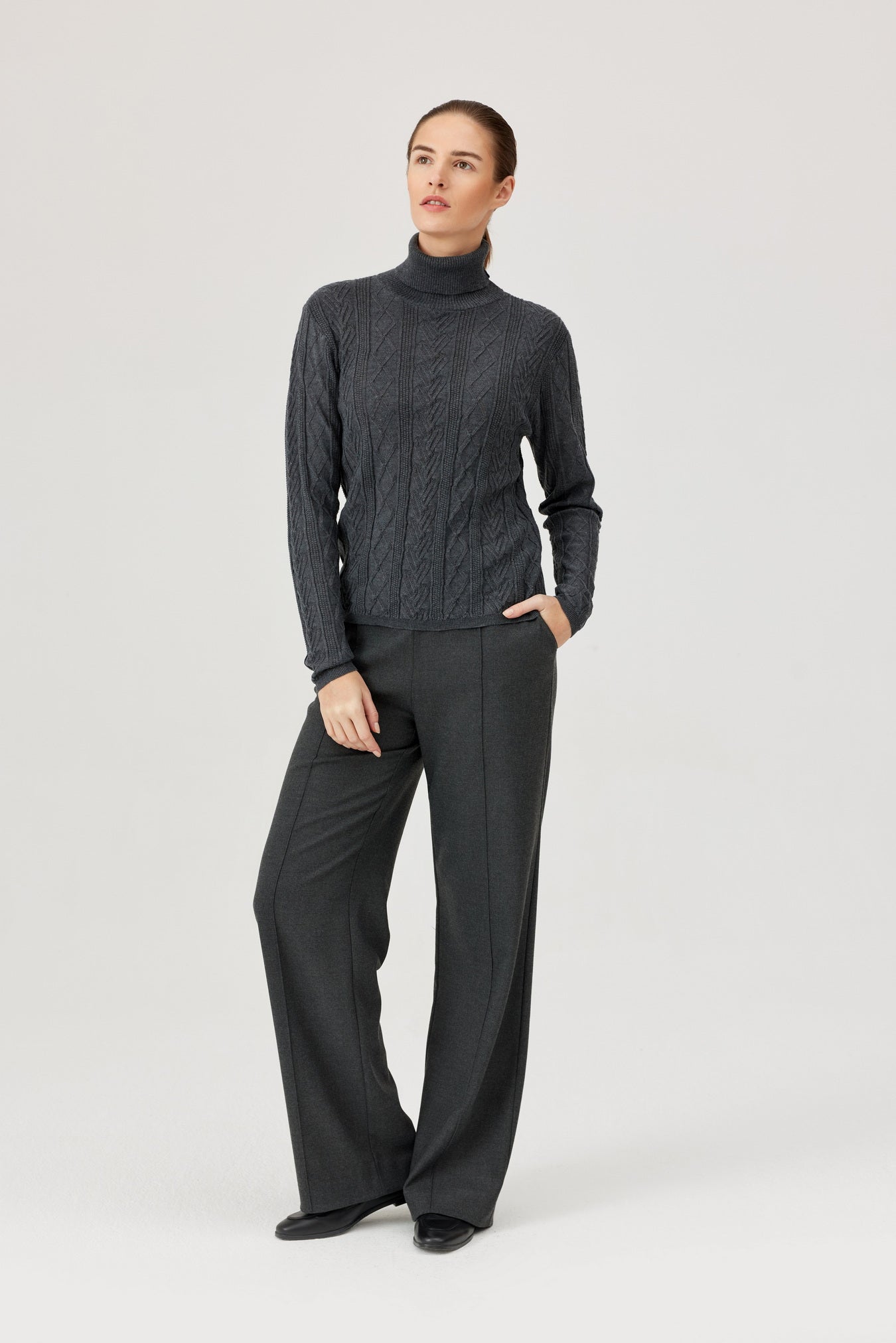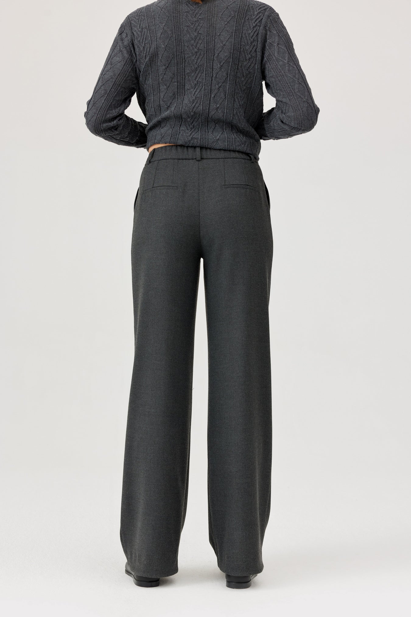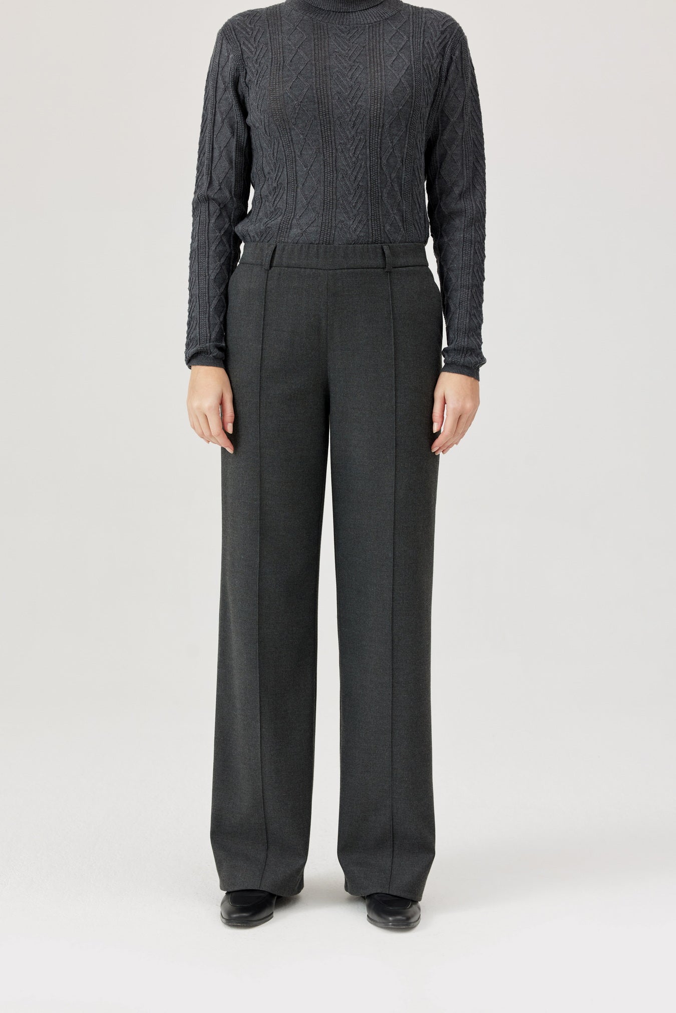 These Grey FÉRIA trousers bring a fun twist to classic style! Crafted from a smooth blend of polyester, viscose, and elastane, they offer a comfy elastic waistband and flattering front pleats. The straight leg lengthens your silhouette, making them perfect for both workdays and weekends. Pair them with a blazer for a polished look or an oversized sweater for relaxed vibes—versatility never looked this playful! Shop Feria in Sola Boutique this season.