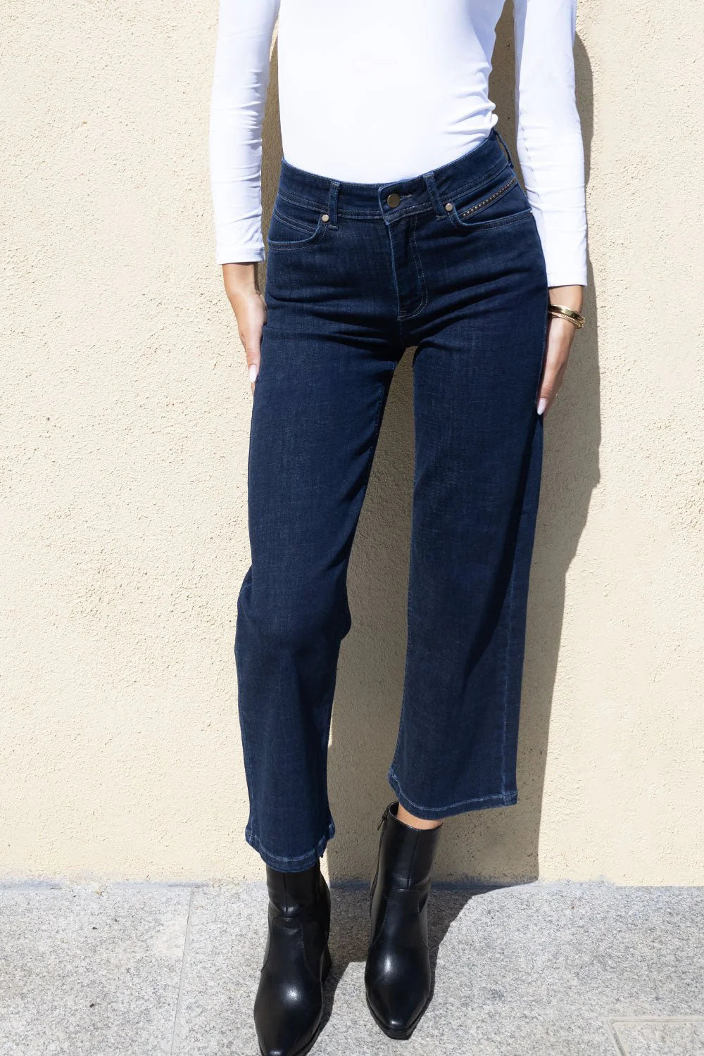 Step into style with the Napoli Wide Leg Denim from No2moro, tailored with a playful 27" inseam that perfectly flaunts your favourite shoes. Crafted from our soft-stretch signature denim, these jeans promise comfort all day long while delivering a flattering mid-rise fit and a breezy wide-leg drape. Utility-inspired pockets add a cool edge, and the classic wash keeps your look effortlessly chic and timeless. A fun twist on denim that’s made to turn heads! Shop No2moro this season in Sola Boutique