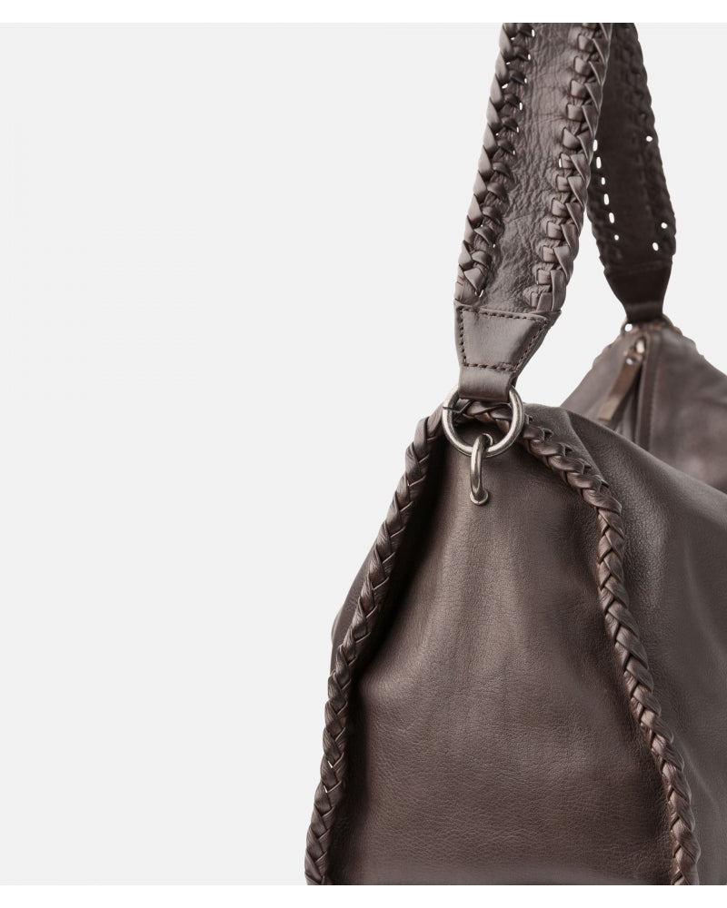 Embrace effortless style with the ParishVille Leather Handbag in rich chocolate. Crafted from washed and braided cowhide, this roomy hobo bag adds a touch of charm to any outfit. The comfortable shoulder strap and secure zip closure keep your essentials close, while internal pockets and soft cotton lining keep things organized and cozy. Perfect for those who love a playful yet practical accessory! Shop BIBA handbags in Sola Boutique this season.
