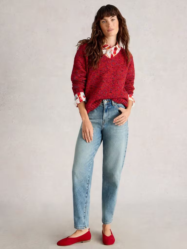 Stay cozy and stylish in this Texture V Neck Jumper in vibrant Mid Red from White Stuff . Crafted from a soft blend of recycled polyester, acrylic, and wool, it offers warmth with a conscience. The classic fit and long sleeves make it perfect for layering, while the flattering V neck adds a touch of charm. Easy to care for with machine washable fabric, this jumper is your go-to for effortless comfort and playful color all season long. Shop White Stuff in Sola Boutique this season.