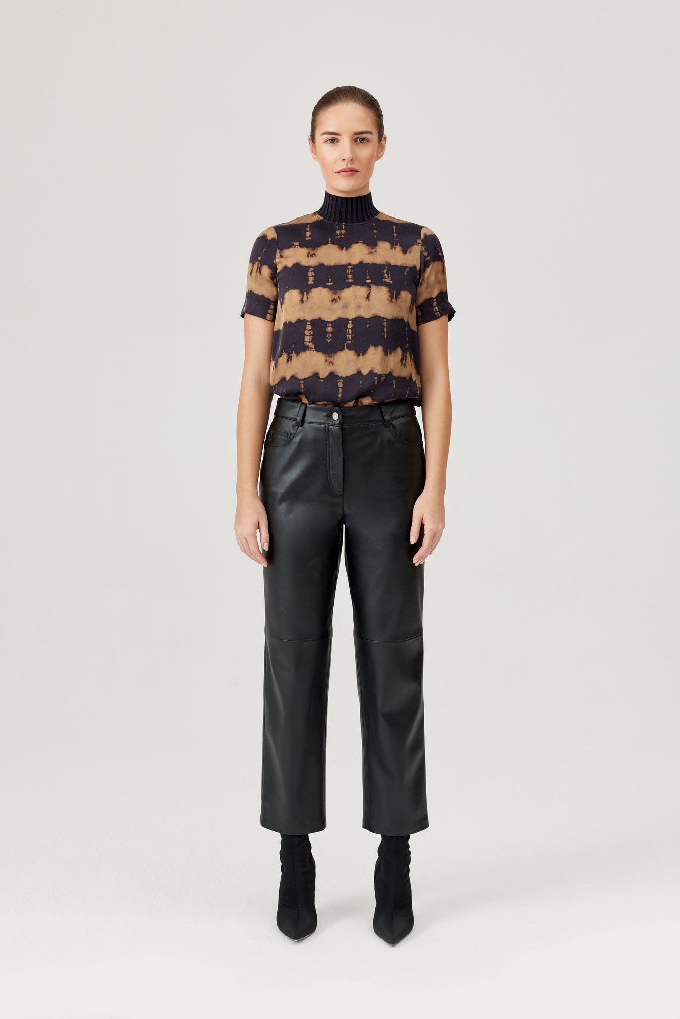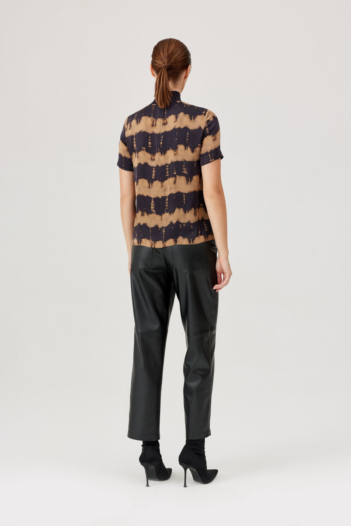 Bring playful vibes to your wardrobe with this tie-dye short-sleeved blouse from Feria. Made from soft, breathable Tencel fabric, its loose fit keeps you comfy and cool all day. The black and caramel beige swirl pairs perfectly with the sporty ribbed neckline, adding a fun and fresh twist to your casual look. Easy to style, just slip it on and enjoy effortless charm wherever you go! Shop Feria in Sola Boutique this season.